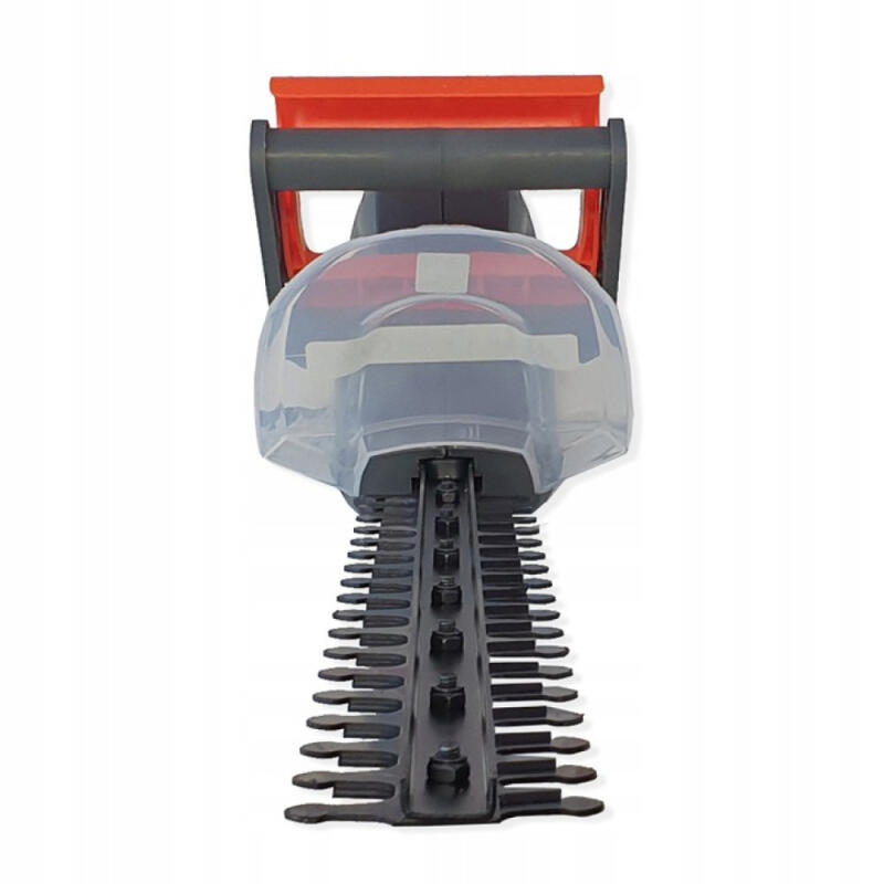 Urządzenie wyposażone jest w przeźroczystą osłonę wykonaną z wytrzymałego tworzywa, poprawiającą bezpieczeństwo pracy. Nożyce do żywopłotu charakteryzują się lekką i wytrzymałą konstrukcją, ponadto duża moc sprawia iż wydajność tego sprzętu stoi na bardzo wysokim poziomie. Niski poziom wibracji i długie nożyce zapewniają komfortową pracę.