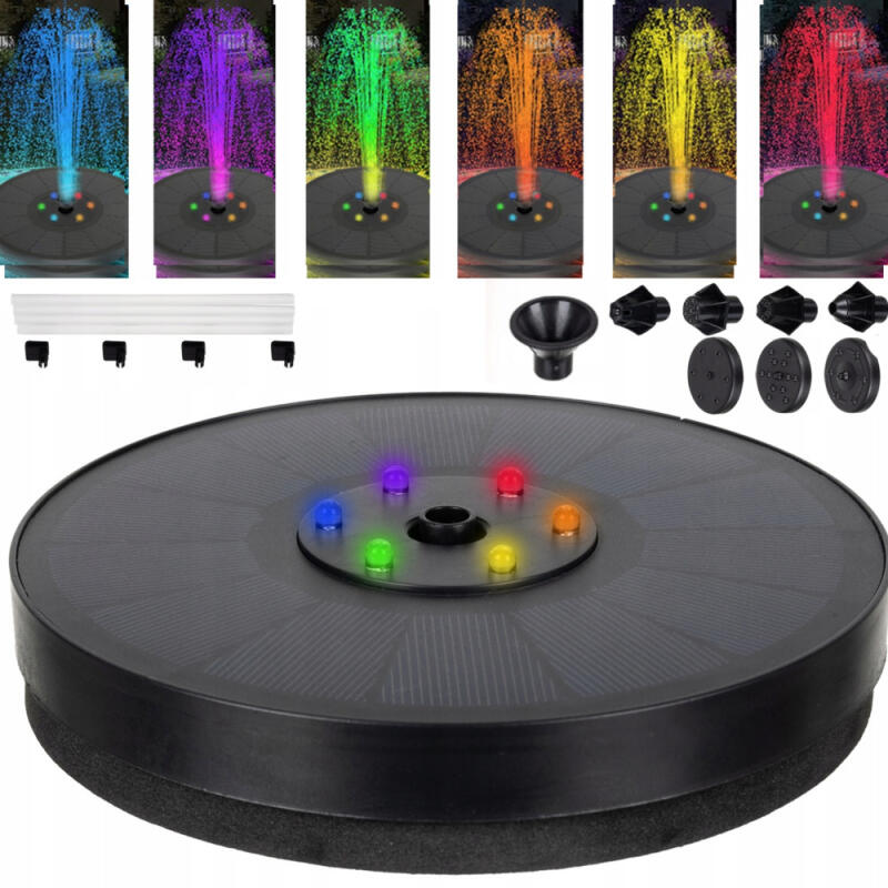 FONTANNA SOLARNA LED OGRODOWA DO OCZKA WODNEGO POMPA PŁYWAJĄCA 7 KOŃCÓWEK