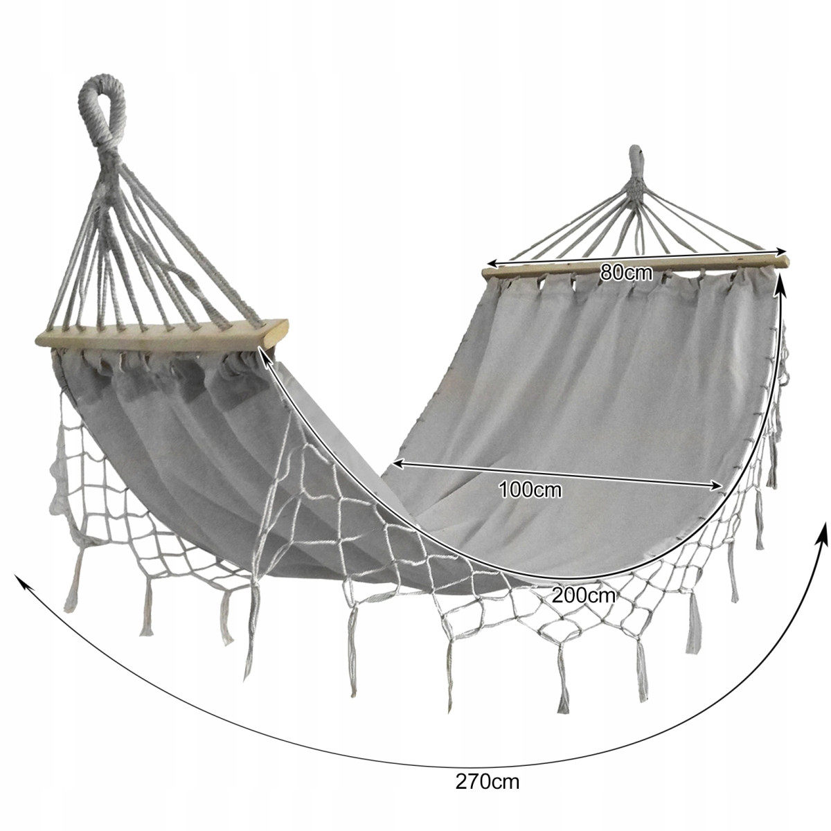 ✓ NATURALNY MATERIAŁ WYSOKIEJ JAKOŚCI – hamak wykonany jest z bawełny z niewielką domieszką poliestru, dzięki czemu jest przyjemny w dotyku i wytrzymały. Dodatkowo zapewnia także prawidłową wentylację, co zapewnia duży komfort podczas korzystania w upalne dni.