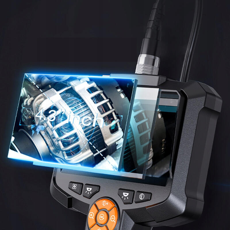 Nasz endoskop to najnowszej generacji kamera inspekcyjna z własnym ekranem LCD o przekątnej 4.3", na którym wyświetlany jest obraz! Produkt nie wymaga instalacji specjalnych aplikacji. Po włączeniu jest od razu gotowy do działania. Urządzenie pomoże zaoszczędzić czas oraz nerwy w pracy! Wygodne przyciski umiejscowione tuż pod ekranem pozwalają sterować wszystkimi funkcjami endoskopu takimi jak: