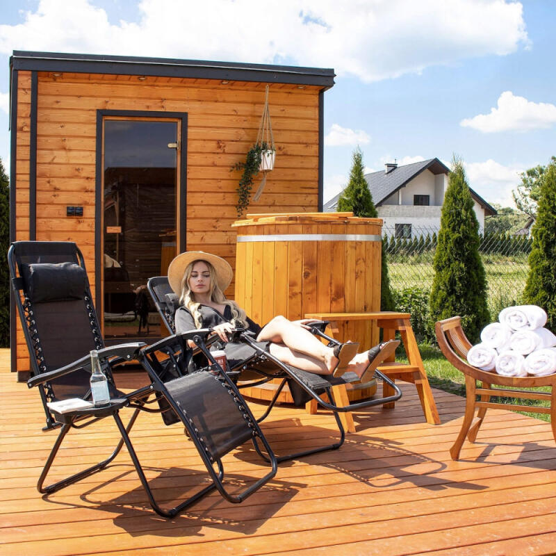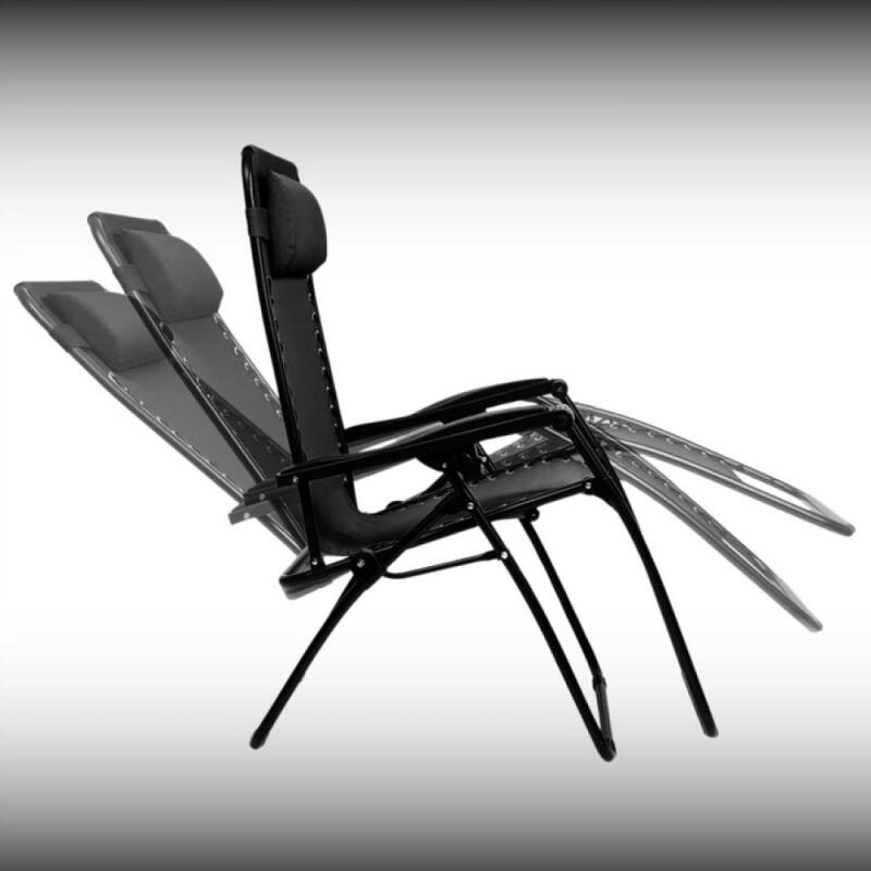LEŻAK OGRODOWY PLAŻOWY GRAWITACYJNY KRZESŁO FOTEL SKŁADANY Z PODUSZKĄ CZARN