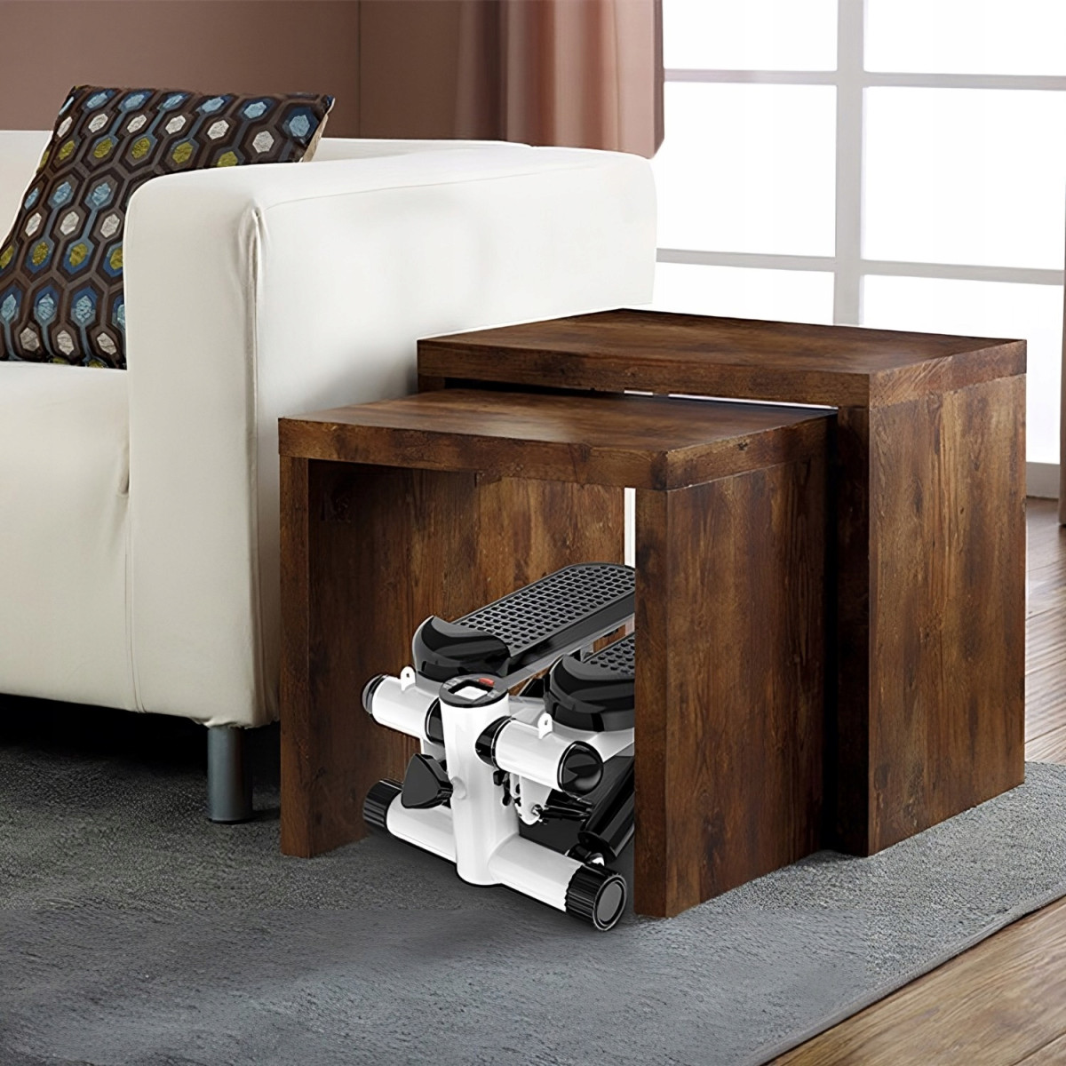 - Kompaktowy i przenośny: Stepper jest niewielkich rozmiarów, co czyni go idealnym rozwiązaniem do treningów domowych.