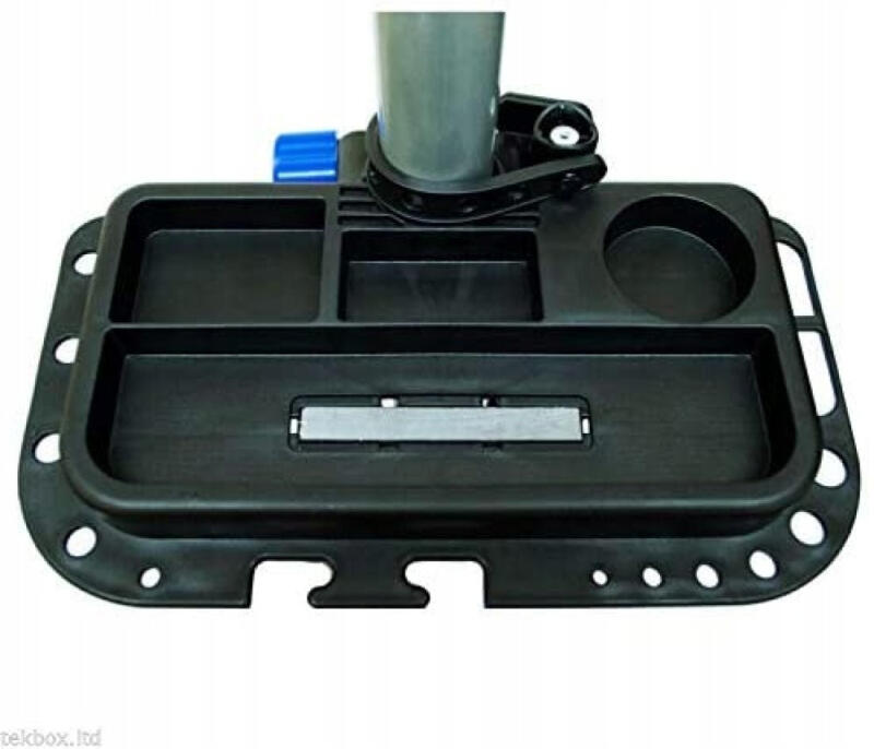 W połowie statywu znajduje się przybornik na klucze i śruby.
