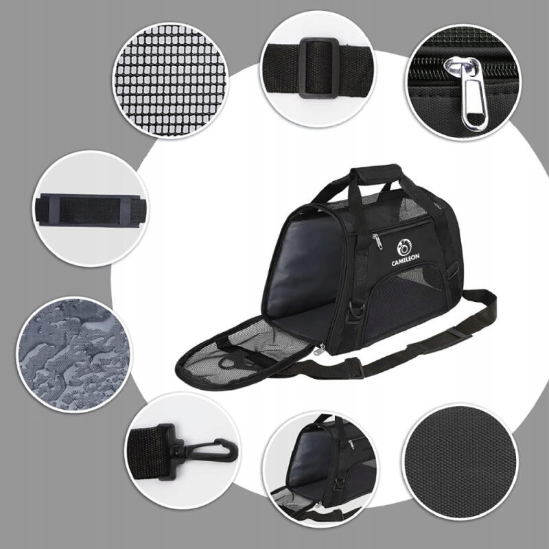 Bezpieczeństwo Torba została zaprojektowana z myślą o najwyższych standardach bezpieczeństwa. Solidne zamki błyskawiczne i wytrzymałe szwy zapewniają bezpieczne przemieszczanie zwierząt, eliminując ryzyko ucieczki lub przypadkowego otwarcia torby.