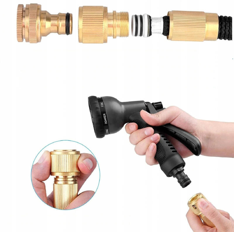 WĄŻ OGRODOWY 30M PISTOLET + ZŁĄCZKI ROZCIĄGLIWY
