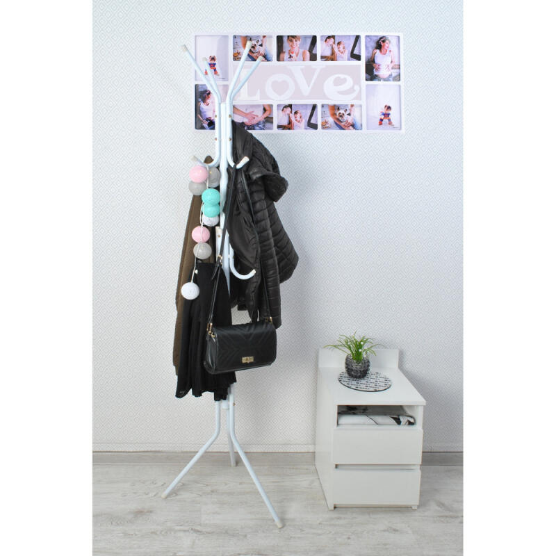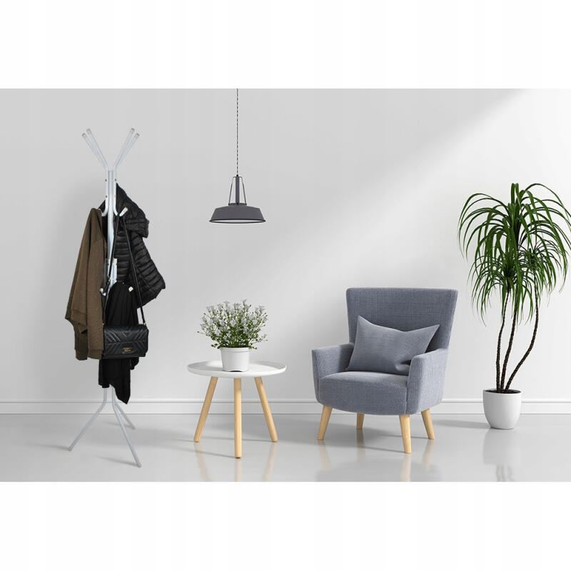 Przemyślana konstrukcja i prosta konfiguracja ramion sprawia, że wieszak przykuwa uwagę swoim ciekawym designem. Wykonany ze stali malowanej proszkowo najwyższej jakości z dbałością o najdrobniejsze szczegóły. Model ma aż 8 ergonomicznych ramion, dzięki czemu pomieści dużo odzieży, kapeluszy czy parasoli. Dzięki ochronnym nakładkom na nogi wieszak jest stabilny i nie rysuje podłogi. Uniwersalny biały kolor sprawia, że model pasuje do każdego wnętrza. Idealnie wkomponuje się w nowocześnie zaaranżowane pomieszczenia. Wieszak Pablo idealnie sprawdzi się w Twoim domu, biurze czy poczekalni.
