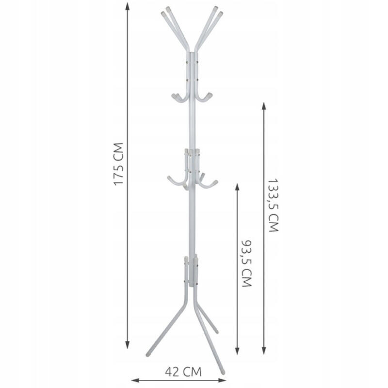 - SOLIDNA I TRWAŁA KONSTRUKCJA - wieszak na ubrania o prostym i nowoczesnym designie wykonany został z wysokiej jakości materiału, dzięki któremu posiada solidną konstrukcję zapewniającą mu stabilność. Dzięki temu nie przewróci się nawet w przypadku znacznej ilości ubrań i innych rzeczy, które się nim znajdą.