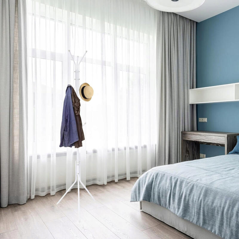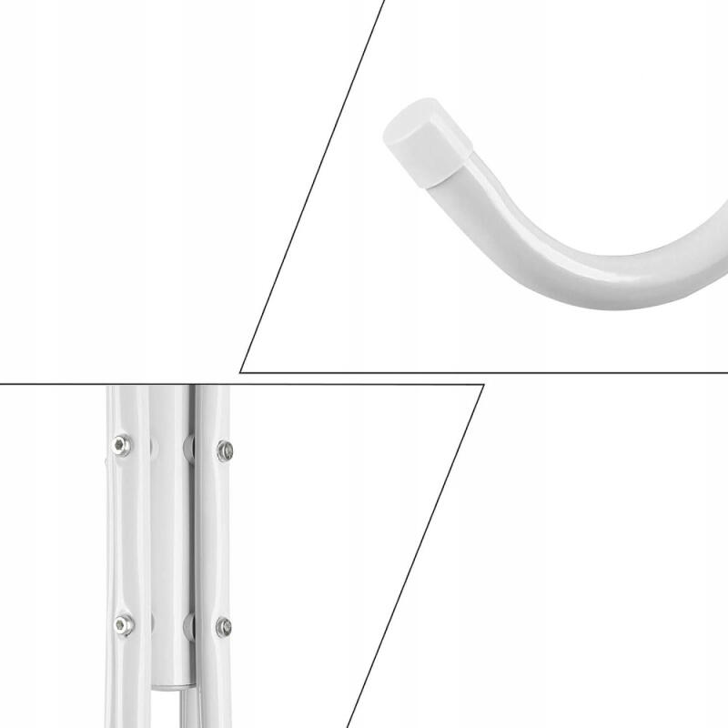 Wieszak podłogowy jest prosty w montażu i nie wymaga użycia skomplikowanych narzędzi. Możesz go szybko i łatwo zmontować po czym postawić w odpowiednim miejscu by cieszyć się eleganckim stojakiem.