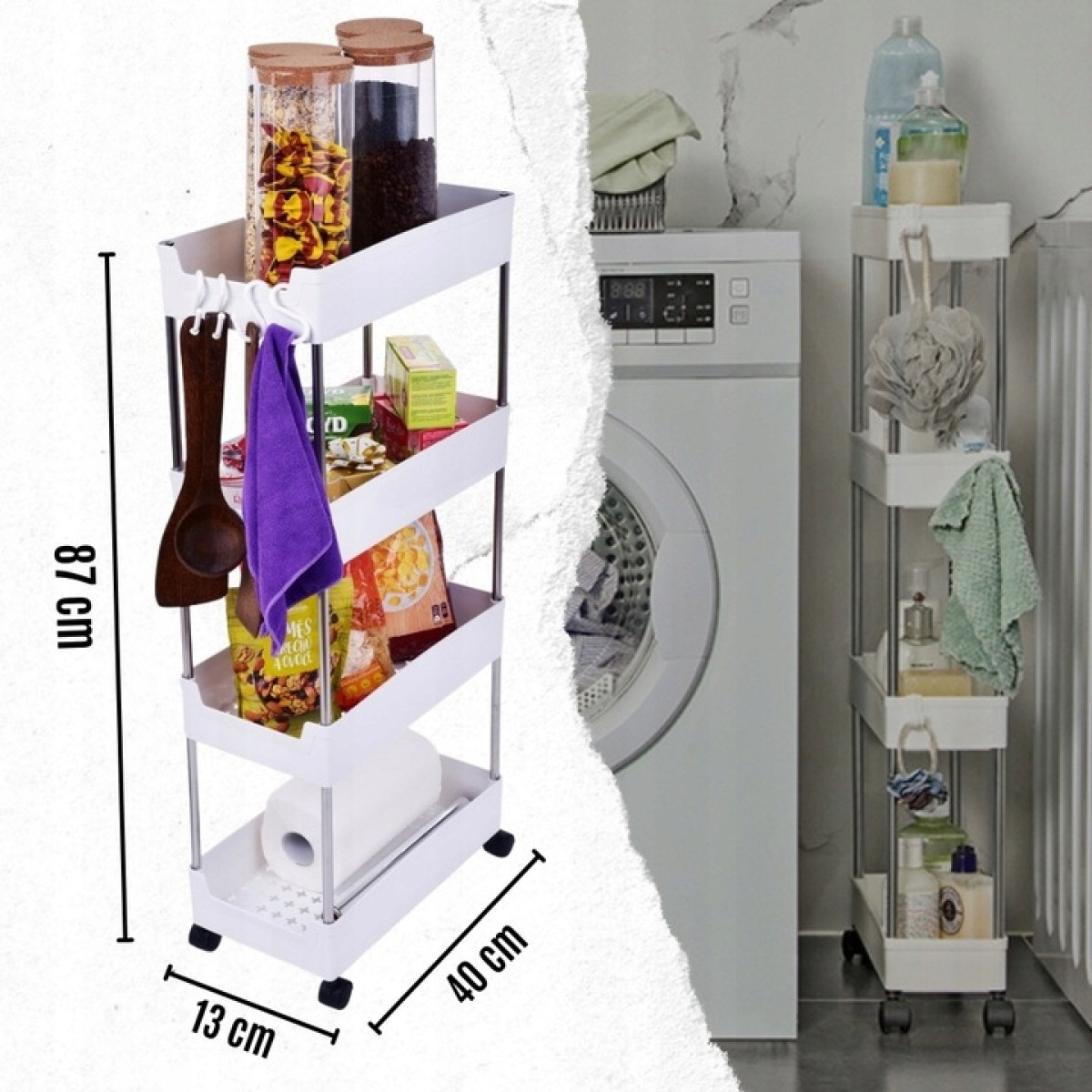 ✅ FUNKCJONALNOŚĆ - Regał półka łazienkowa kuchenna szafka na kółkach to niezwykle praktyczny i uniwersalny produkt, który doskonale sprawdzi się w różnych pomieszczeniach takich jak kuchnia, łazienka, salon czy sypialnia.