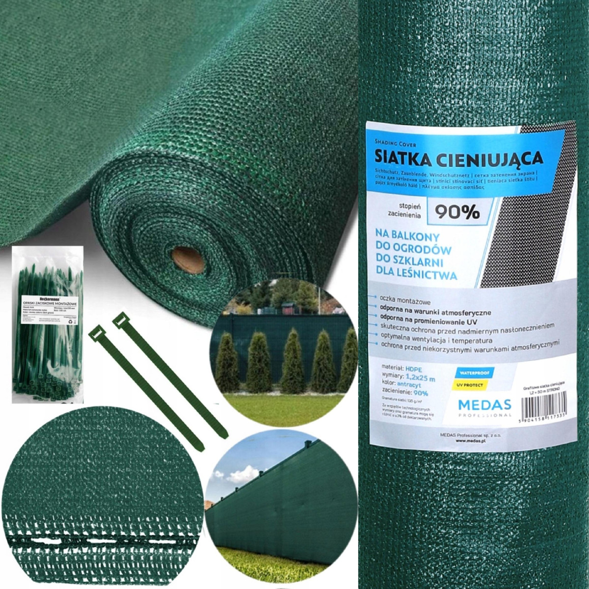 ▶️Siatka cieniująca, maskująca z HDPE 1,2m x 25m + 100 sztuk opasek zaciskowych.