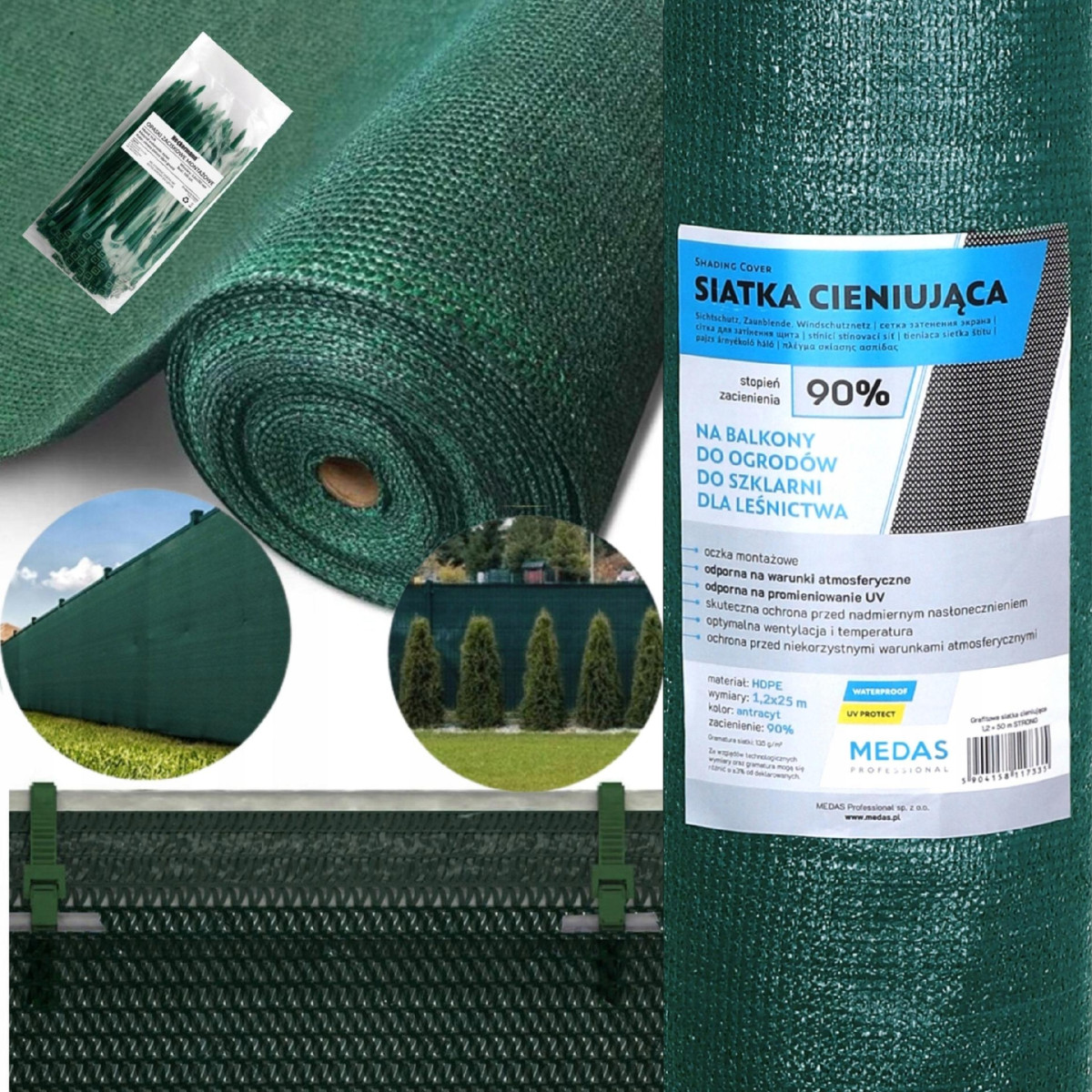 W zestawie z siatką otrzymasz od nas opaski zaciskowe do montażu.