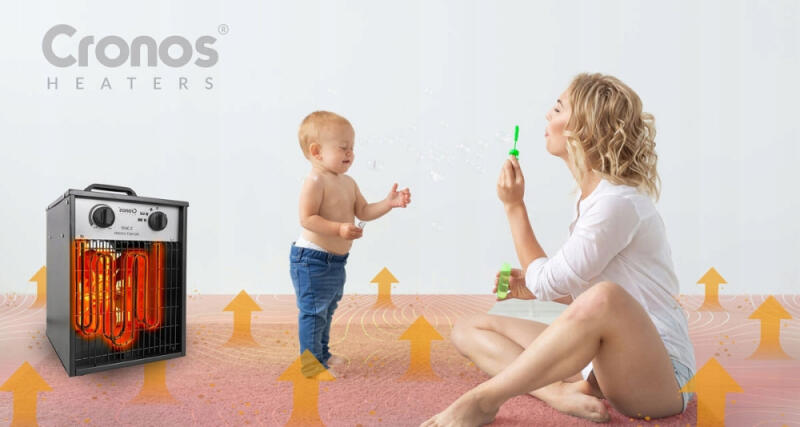 Termowentylator CRONOS® bardzo wydajnie rozprowadza ciepło po pomieszczeniu. Skutecznie nagrzeje powierzchnię o wielkości do 25m2. Urządzenie jest wyposażone w termostat samosterujący. Wyczuwa on temperaturę powietrza i kontroluje temperaturę w pomieszczeniu. Termostat wyłączy urządzenie w razie ryzyka przegrzania.