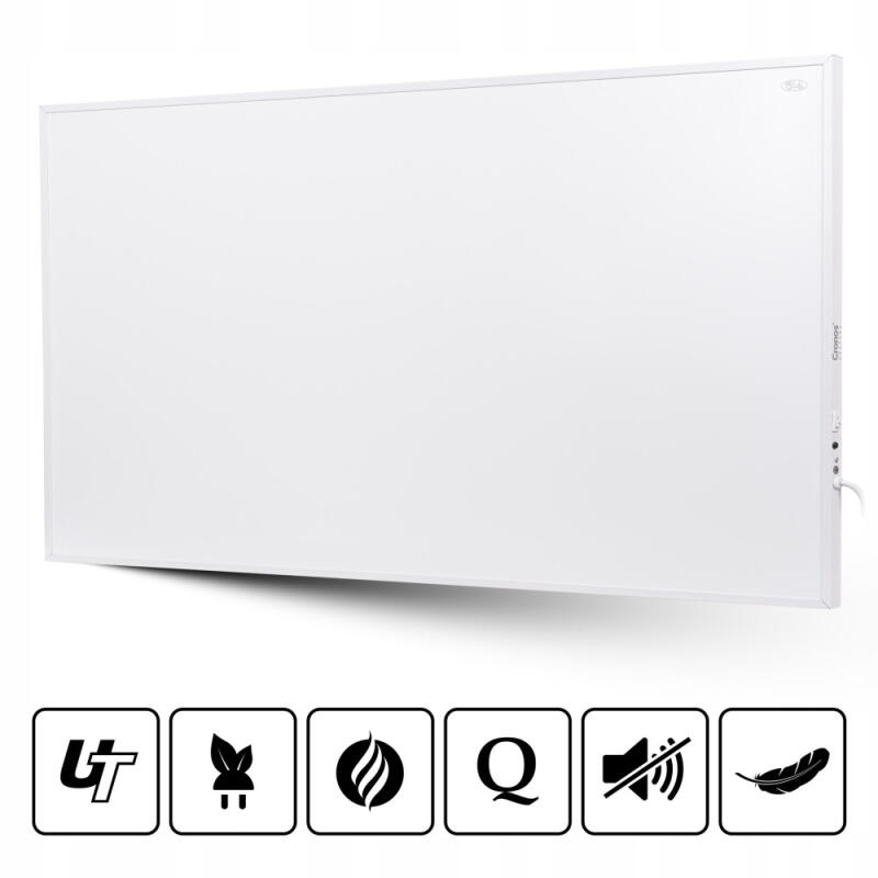 Korzystanie z promiennika podczerwieni jest w pełni bezpieczne, ponieważ posiada zabezpieczenie przed przegrzaniem. Uniwersalność zastosowania jest możliwa nie tylko dzięki estetycznemu i minimalistycznemu designowi (wygląd, kształt, ultracienki panel), a także natychmiastowemu nagrzewaniu się. Zasilanie grzejnika z gniazdka o napięciu 220-240V.