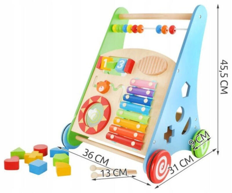 Atrakcyjna zabawka rozwijająca szereg zdolności najmłodszego członka rodziny jest marzeniem każdego rodzica. Kupując dziecku pchacz drewniany edukacyjny z sorterem pozwolisz mu łączyć zabawę z edukacją już od najmłodszych lat. Musisz jednak pamiętać, że nauka chodzenia to proces, który dziecko musi przejść samodzielnie - pchacz drewniany będzie jedynie dodatkiem, który uprzyjemni część tej nauki. Bez wątpienia zachęci on jednak do szybszego podnoszenia się i wstawania.