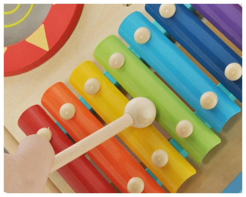 Każda ze ścian pchacza ma zupełnie inną funkcjonalność i charakter, dzięki czemu przykuwa uwagę dziecka i skupia go na zabawie.