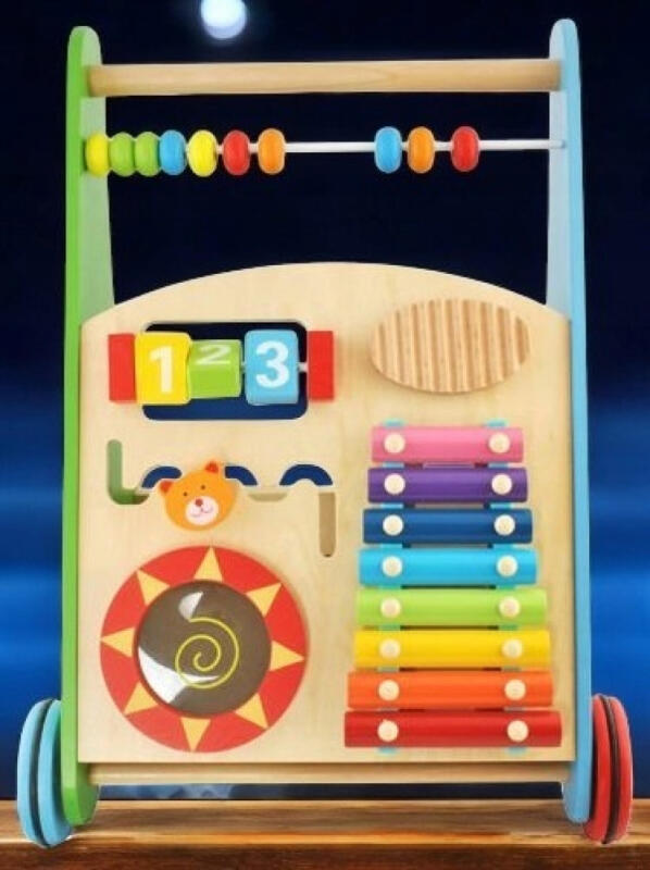 Stabliny i bezpieczny drewniany chodzik dla dziecka to zabawka, która towarzyszy dziecku przy stawianiu pierwszych kroków jak również sprawdzi się idealnie jako zabawka rozwijająca motorykę dziecka.