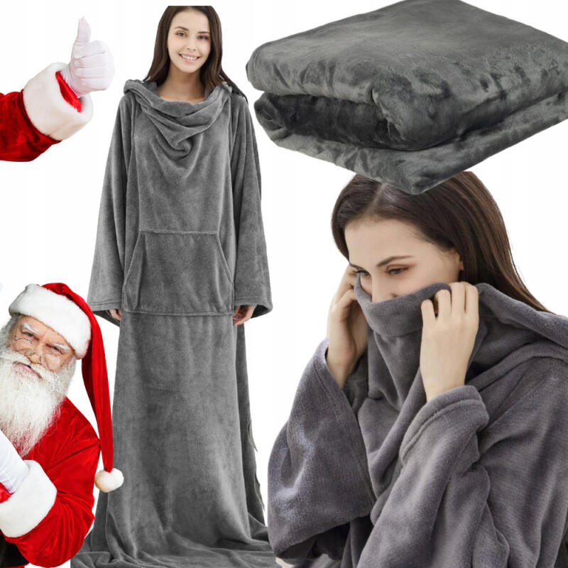 - OVERSIZE – koc z rękawami występuje w dużym rozmiarze uniwersalnym. Przeznaczony jest zarówno dla kobiet jak i mężczyzn, będzie pasował także dla dzieci. Luźny krój pozwoli schować nogi i w pełni się okryć.