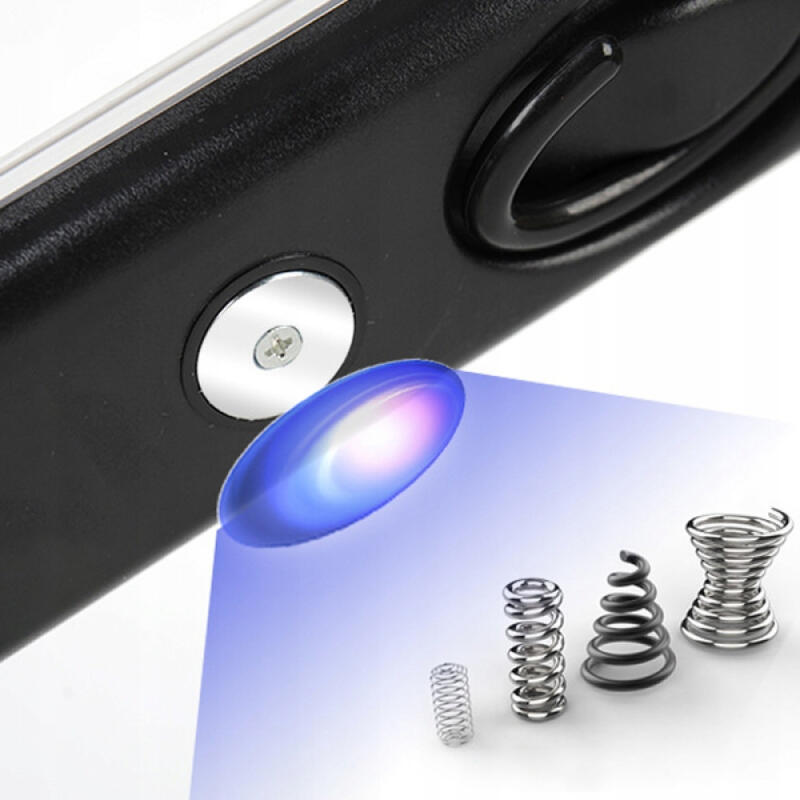 Dzięki swojemu wykonaniu oraz małej wadze latarka dobrze leży w dłoni co daje duży komfort w jej użytkowaniu. Posiada wbudowany włącznik, silny magnes u spodu oraz składany haczyk do zawieszenia. Dzięki temu idealnie nadaje się do prac warsztatowych w garażach, serwisach lub do codziennego użytku.