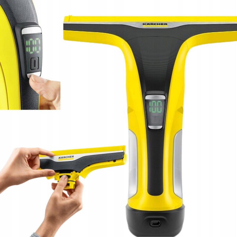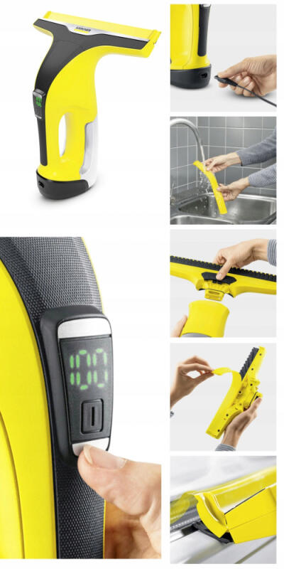 Najwyższy i najsolidniejszy model myjki do okien Kärcher. Posiada doskonałe listwy zbierające o dużej powierzchni, wykonane zostały z silikonu. Bardzo długi czas pracy na jednej baterii ok 100 minut, pozwala na wygodne mycie zabrudzonych powierzchni, bez przerw na ładowanie myjki. Urządzenie jest wyposażone w wyświetlacz pokazujący pozostały czas pracy. W wyposażeniu środek do czyszczenia okien (koncentrat – 1 x 20 ml), butelka ze spryskiwaczem, pad z mikrofibry, bateria litowo-jonowa oraz ładowarka