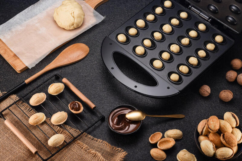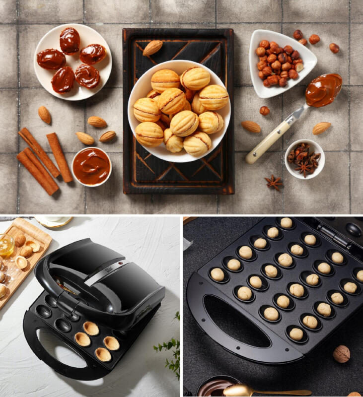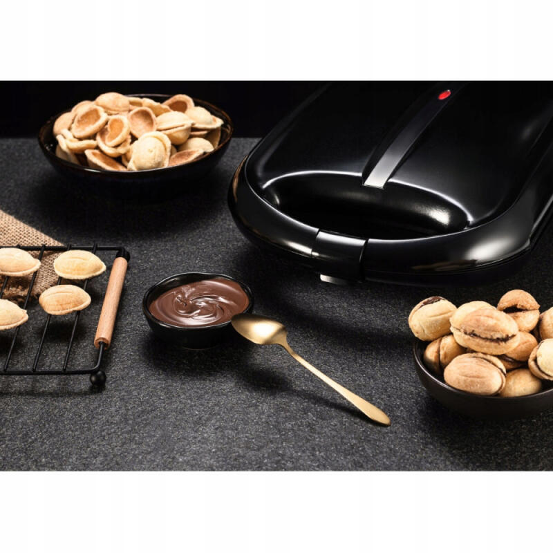 - 24 POŁÓWKI – w opiekaczu na jeden raz upieczesz, aż 24 połówki, dzięki którym po napełnieniu masą wyjdzie 12 nadzianych orzeszków. Te słynne ciasteczka nazywane niekiedy "ciasteczkami z PRL-u" to pyszne orzechy, które można napełnić dowolnym nadzieniem.
