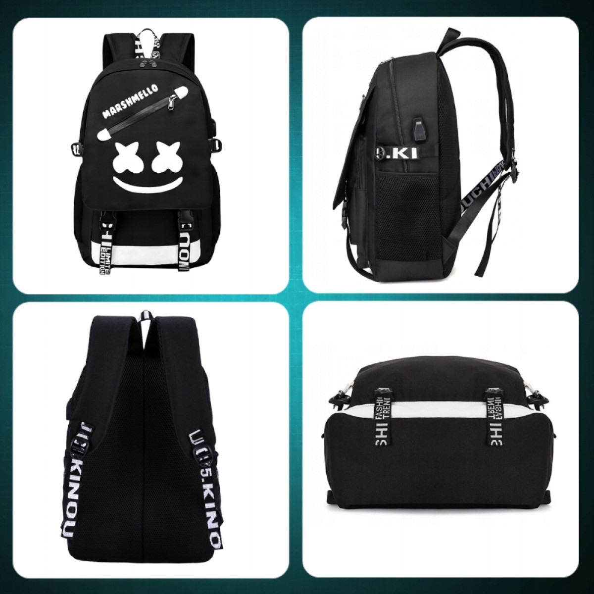 PLECAK SZKOLNY ŚWIECĄCY MARSHMELLO POJEMNY 35L WIELOKOMOROWY WODOODPORNY