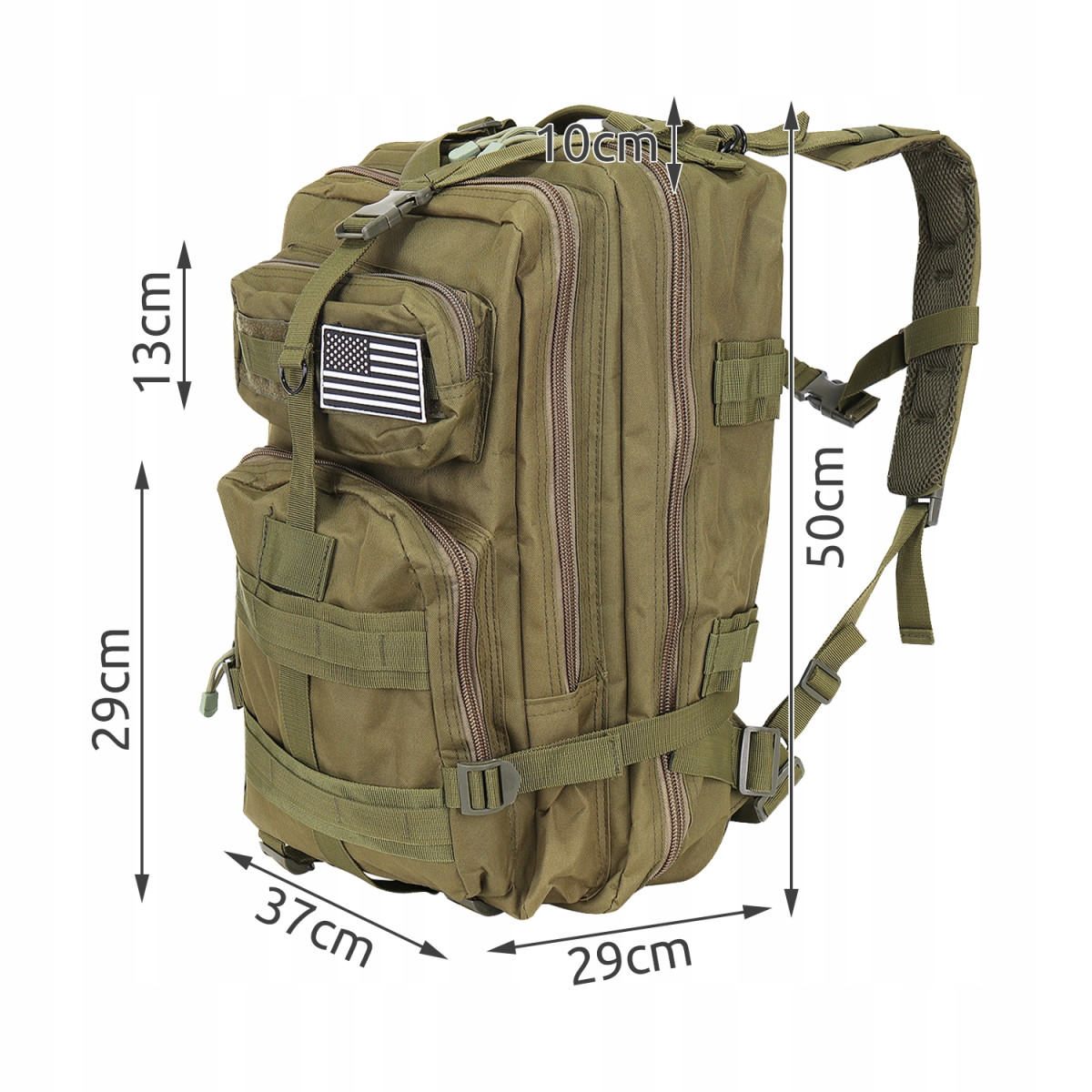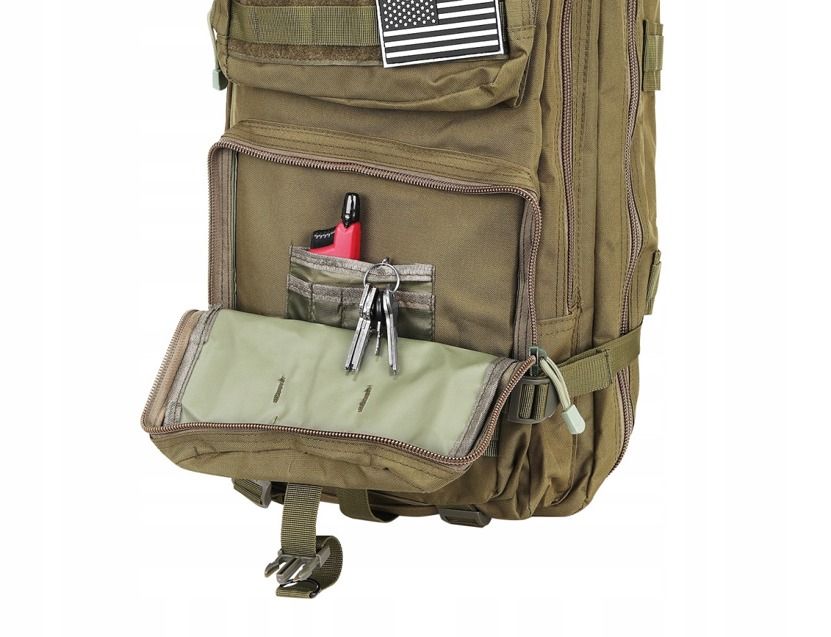 Plecak militarno-survivalowy o pojemności 38l jest to model umożliwiający idealne dopasowanie dla każdego! Doskonale sprawdzi się podczas wypraw w góry, ale nie tylko, plecak znajduje zastosowanie również do codziennego użytku, np. do szkoły. Wykonany został z wytrzymałego, wodoodpornego materiału, odpornego na rozdarcia i przecieranie. Plecak posiada rączkę, która umożliwia wygodne przenoszenie.