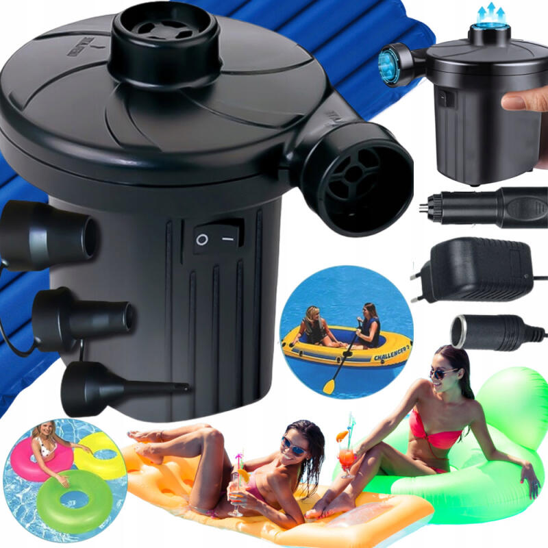 POMPKA ELEKTRYCZNA 12V/230V DO MATERACA PIŁKI BASENU 2w1 KOŃCÓWKI ZESTAW