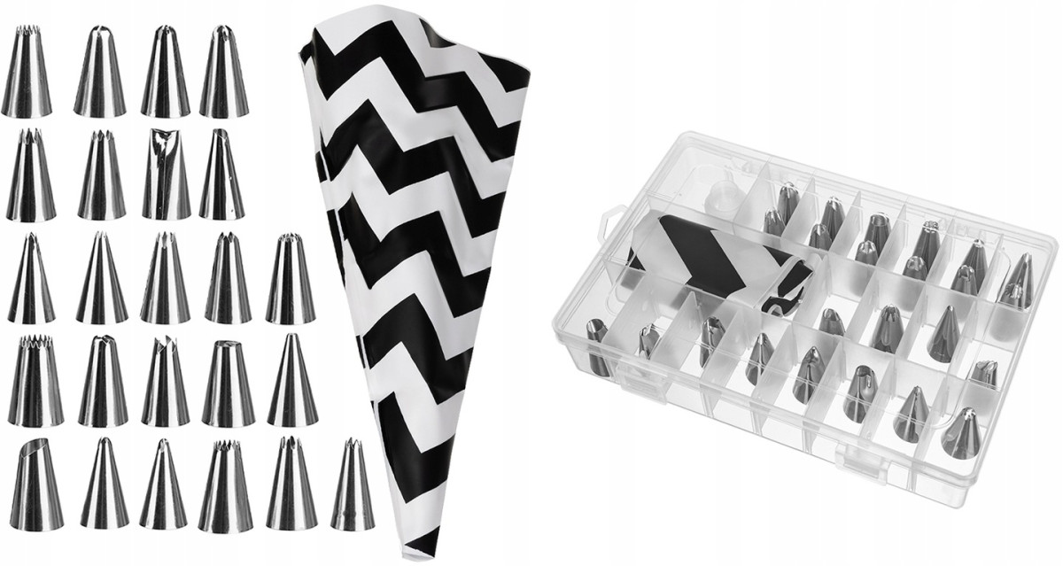- rękaw cukierniczy + 24 końcówek dekoracyjnych w organizerze