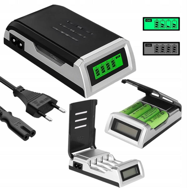 - Ponadto, jest to ładowarka, która jest kompatybilna z akumulatorami AA i AAA,które są powszechnie stosowane w wielu urządzeniach elektronicznych, takich jak piloty, latarki, aparaty fotograficzne, zabawki i wiele innych.