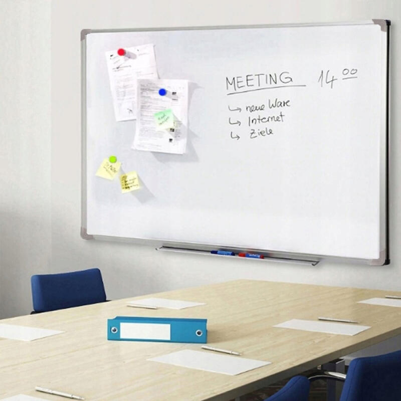 Biała tablica magnetyczna ma szeroką gamę zastosowań. Będzie stanowiła znakomite wyposażenie biura, firmy, sali konferencyjnej czy też sali szkolnej. Ułatwi prezentację materiałów oraz pozwoli na planowanie działań czy też ustalenie planu dnia.