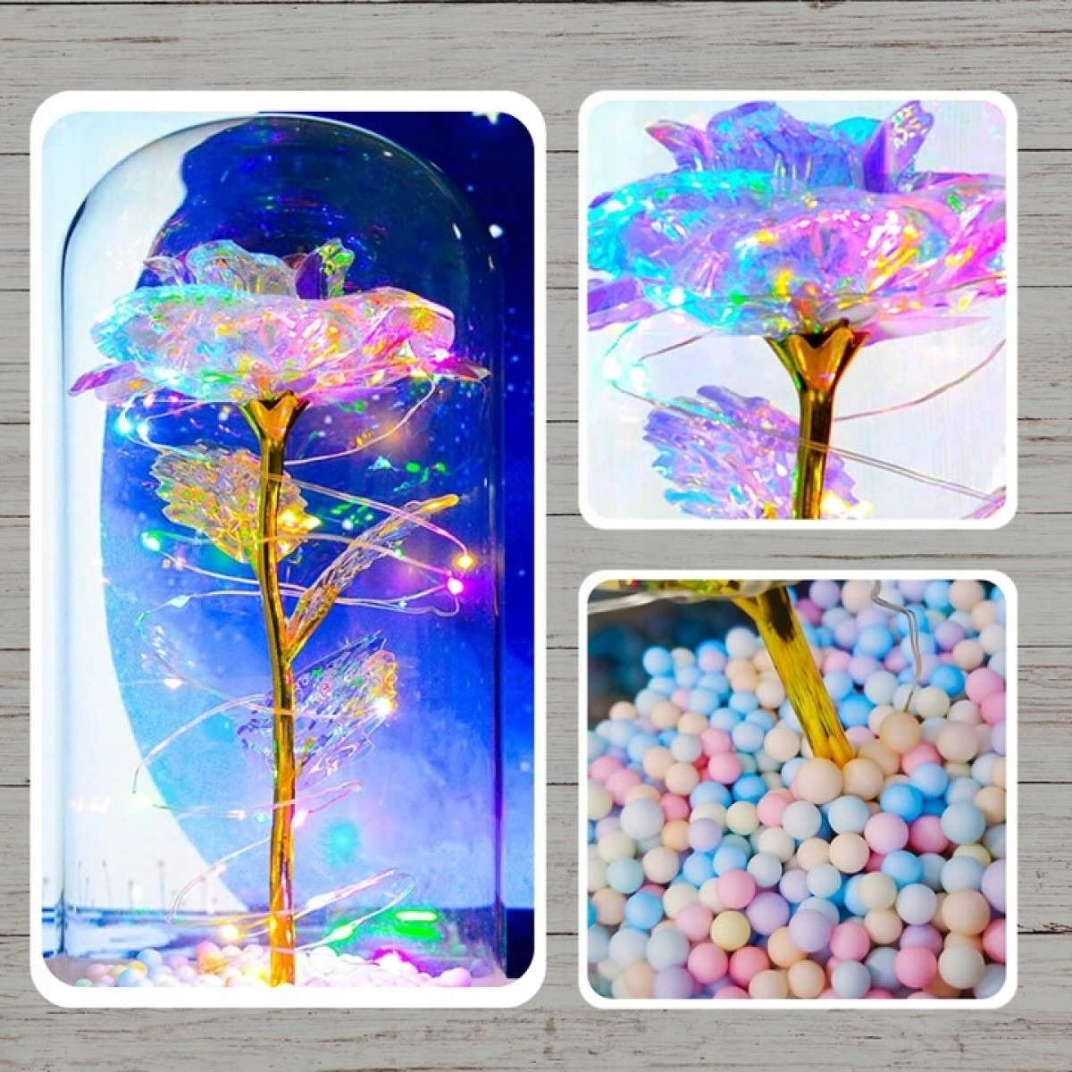 WIECZNA RÓŻA W SZKLE ŚWIECĄCA LED PREZENT PUDEŁKO ŚWIĘTA URODZINY GWIAZDKA