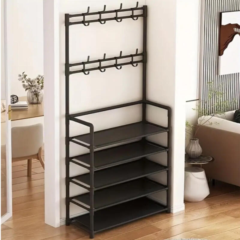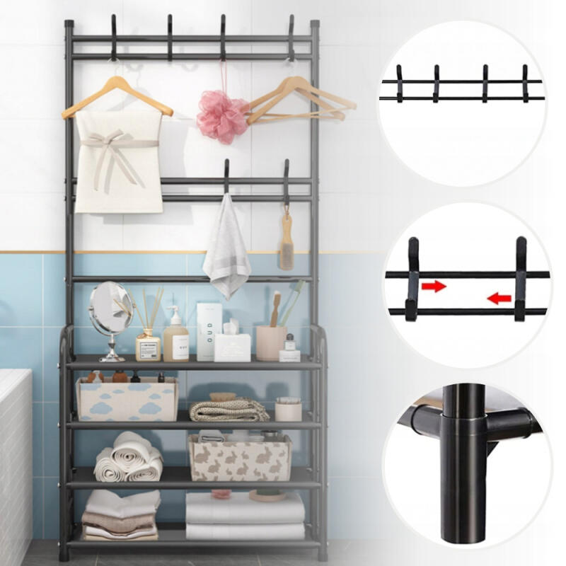 Duży wieszak z półkami, ułatwi Ci utrzymanie porządku z ubraniami, torebkami oraz butami. Na półkach możesz również umieścić kartoniki czy torebki! Idealnie sprawdzi się na korytarzu, w sypialni, garderobie jak i w łazience. Solidna konstrukcja pozwoli na przechowywanie dużej ilości ubrań, butów czy kosmetyków, a jego elegancki wygląd sprawi, że będzie on stylową ozdobą w Twoim domu. Dzięki wieszakom zyskujesz dodatkowe miejsce do przechowywania, możesz na nich zawiesić czapki, sweterki, szaliki czy torebki!