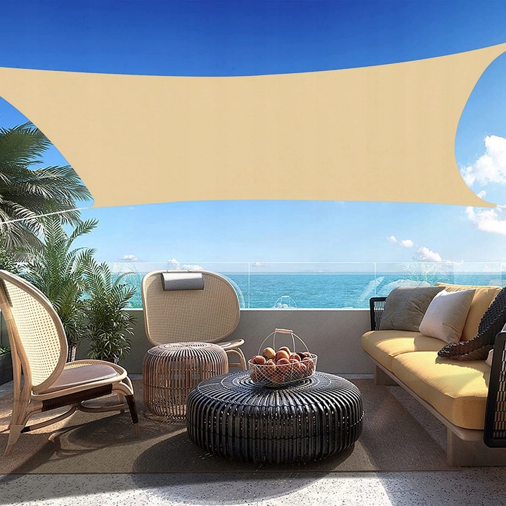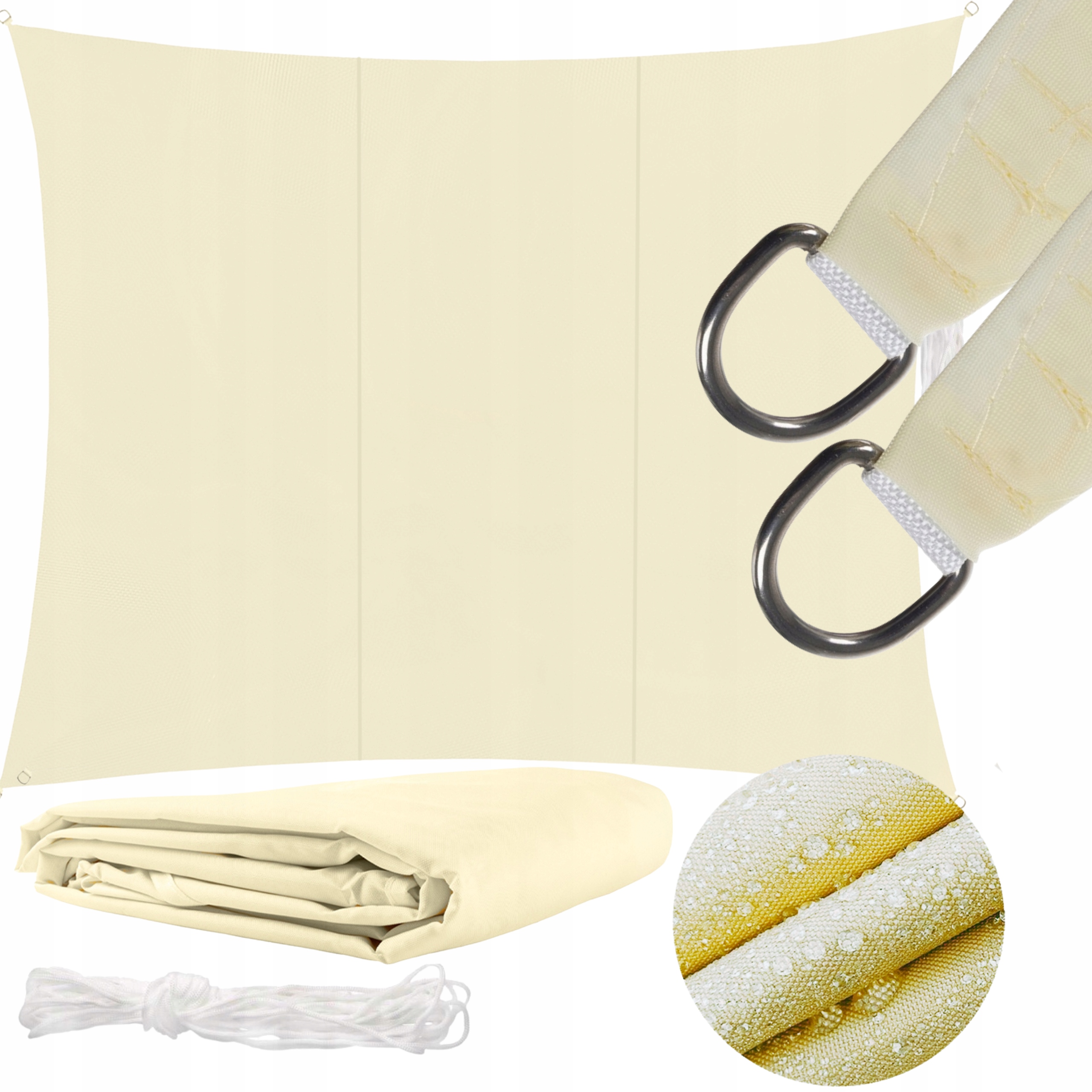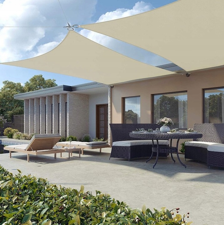 ŻAGIEL PRZECIWSŁONECZNY OGRODOWY 3,6x3,6m PROSTOKĄTNY BEŻOWY WODOODPORNY
