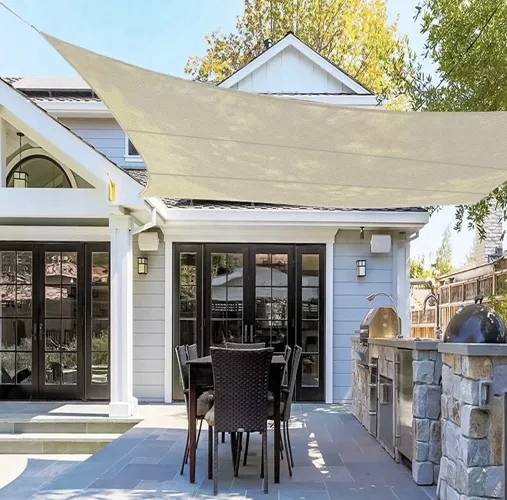 - CHRONI PRZED SŁOŃCEM – dzięki temu, że żagiel wykonany został z wysokiej jakości włókien o dużej gramaturze, nie przepuszcza promieni słonecznych. Skutecznie obniża temperaturę panującą pod żaglem oraz umożliwia cyrkulację powietrza, co jest niezwykle przydatne podczas letnich upalnych dni.