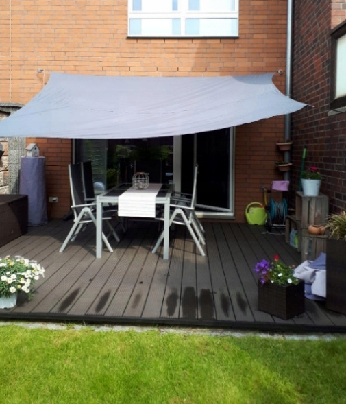 Materiał zastosowany w żaglu przeciwsłonecznym jest wodoodporny a tym samym odporny na wilgoć oraz pleśń. Niezwykle szybko schnie co jest bardzo istotne podczas szybko zmieniającej się pogody.