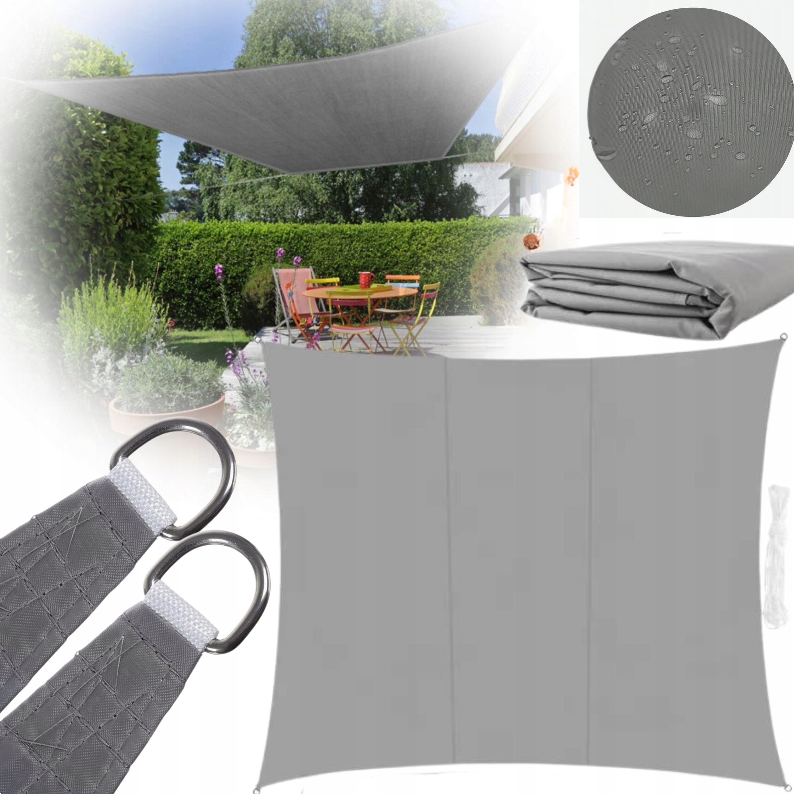 ŻAGIEL PRZECIWSŁONECZNY OGRODOWY 3,6x3,6m PROSTOKĄTNY SZARY WODOODPORNY